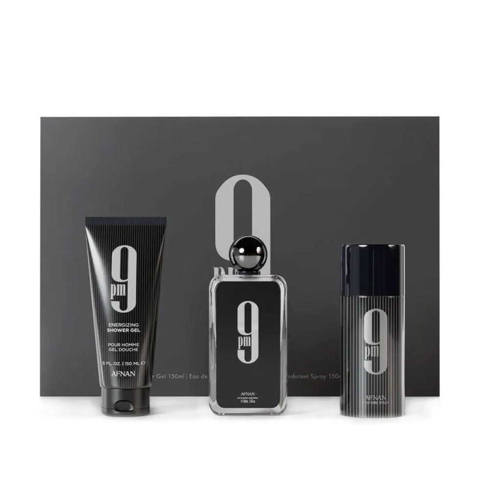 Profumi Profumi da uomo Cofanetti regalo Afnan 9 pm EDP 100 ml + DEO spray 150 ml + SG 150 ml M 1 ks