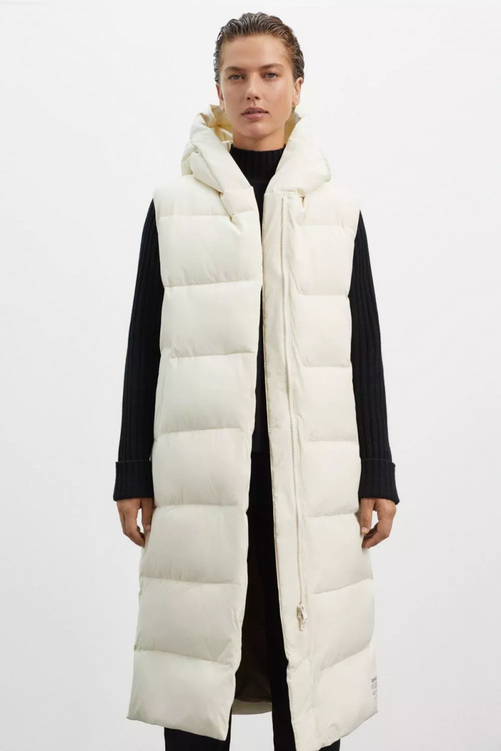Il gilet lungo con cappuccio della collezione sostenibile Ecoalf vi piacerà. Il gilet vi terrà al caldo e il suo colore bianco crema illuminerà qualsiasi outfit. Il gilet aderisce al Global Recycled Standard e combina la moda con la qualità, il comfort e l'impegno ecologico. Sono vegani e senza PFC.