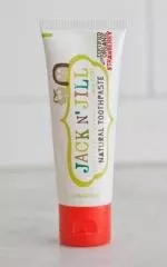 Dentifricio al 100% naturale di Jack n' Jill contiene aromi di frutta di qualità biologica ed è completamente sicuro per i bambini nel caso in cui lo ingoino. Include anche un estratto di calendula BIO per una delicata cura delle gengive.