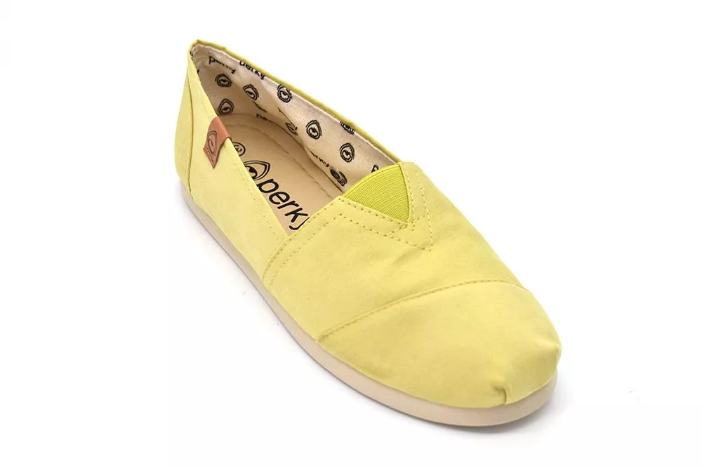 Le scarpe monocolore sono quasi un'aggiunta irrinunciabile a qualsiasi guardaroba! Si abbinano a tutti gli outfit e potete scegliere esattamente il colore che preferite. Perky porta questo giallo brillante che si abbina perfettamente agli abiti estivi e rallegra ogni giorno per voi e per le persone che vi circondano. Le espadrillas Perky Lima sono realizzate a mano con cotone coltivato in modo sostenibile e PVC riciclato.