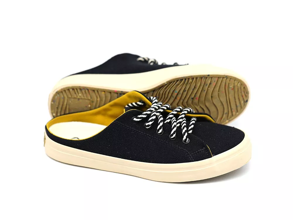 Le scarpe da ginnastica sono una delle tue calzature per tutto l'anno e non hai intenzione di rinunciarvi nemmeno in estate? Allora amerete la nuova collezione ecologica Perky. Pantofole nere a forma di sneakers, che apprezzerete nei viaggi e nelle passeggiate fuori strada, quando la parte anteriore dei piedi è costantemente protetta, mentre la parte posteriore esposta assicura traspirabilità e facilità di infilarsi. Il materiale è cotone e la suola è fatta con una mescola di gomma riciclata.